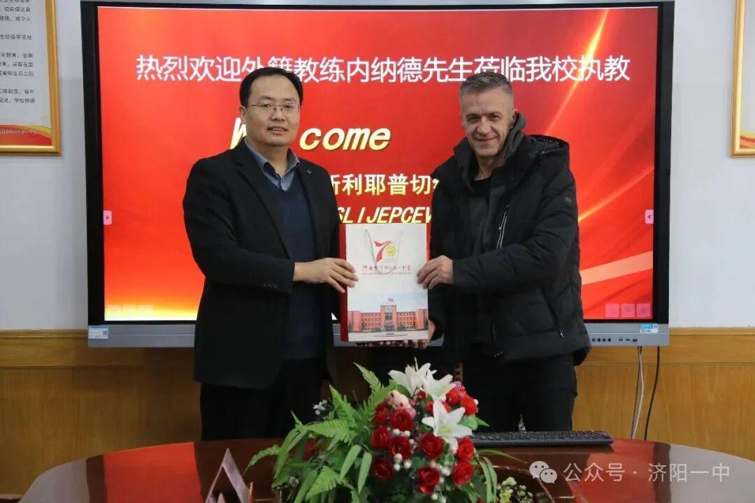 1月15日,济阳一中在办公楼二楼会议室举行隆重仪式,热烈欢迎来自塞尔维亚的足球教练内纳德·米洛舍维奇(Nenad Milosevic)先生正式加入我校教学团队。校长李振华、副书记何贻利、各年级足球教练、翻译赵兴国老师及相关职能部门负责人共同出席。仪式由校长助理程建强主持。